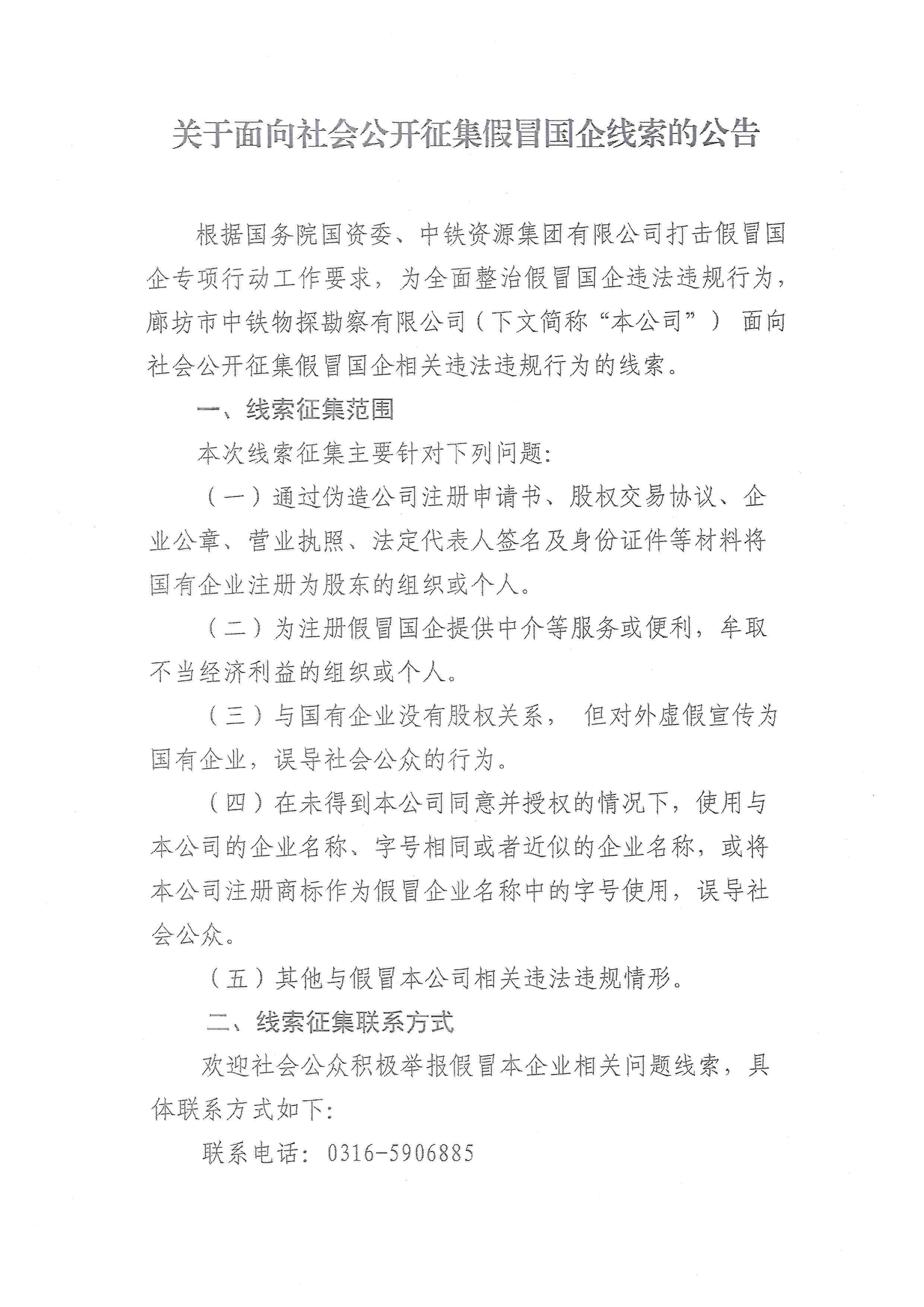 關(guān)于面向社會(huì)公開征集假冒國企線索的公告